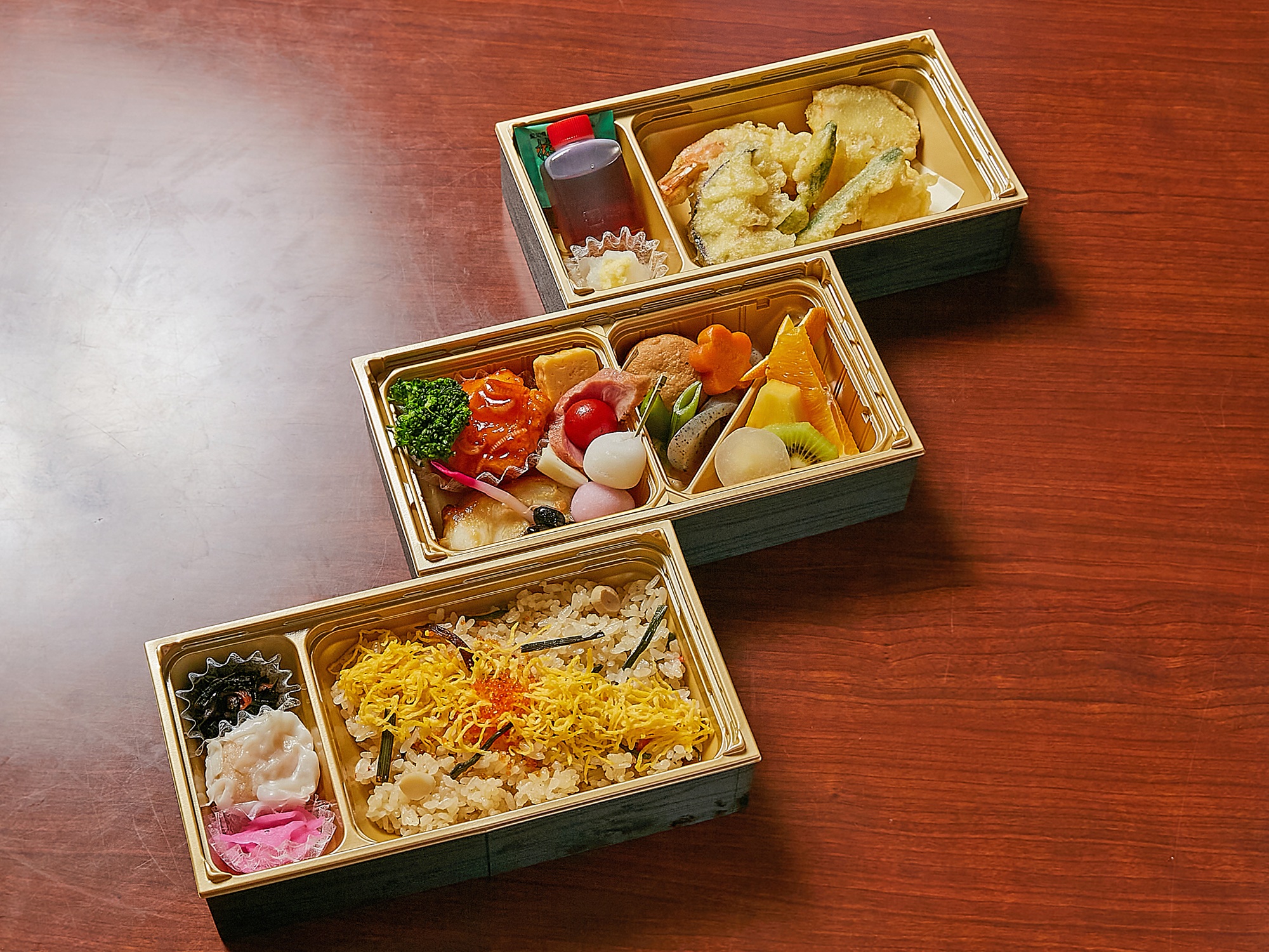 | 一段弁当 | ちょっと豪華な昼食弁当や会合での弁当、 また御祝い・ご法要の席でのお弁当にも! |